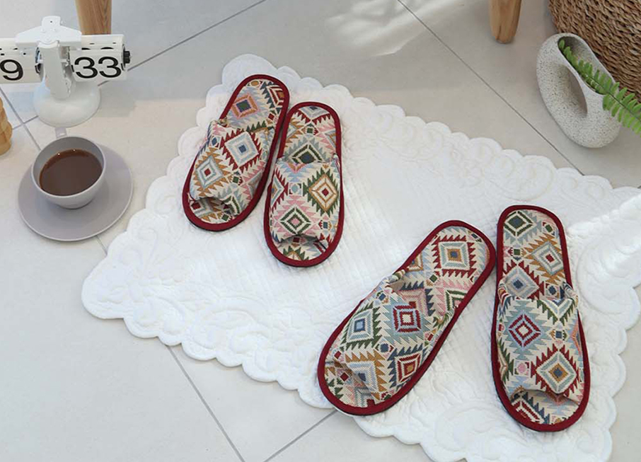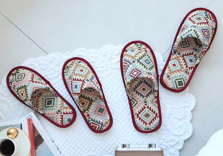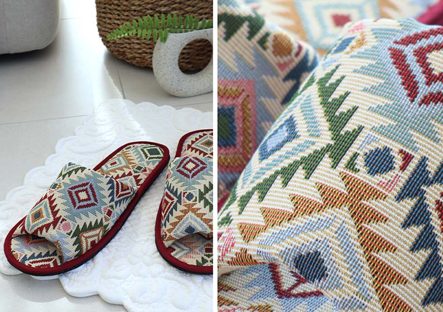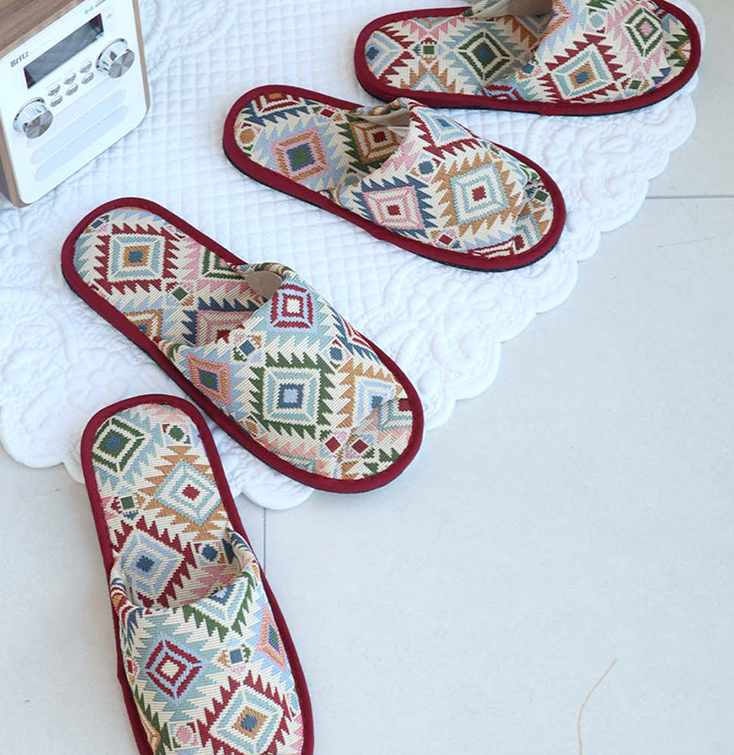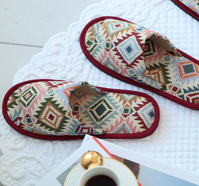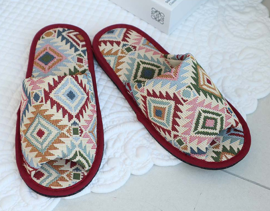 Designed with luxurious jacquard fabric, these slippers are both sturdy and elegant, offering a sophisticated and refined look for women