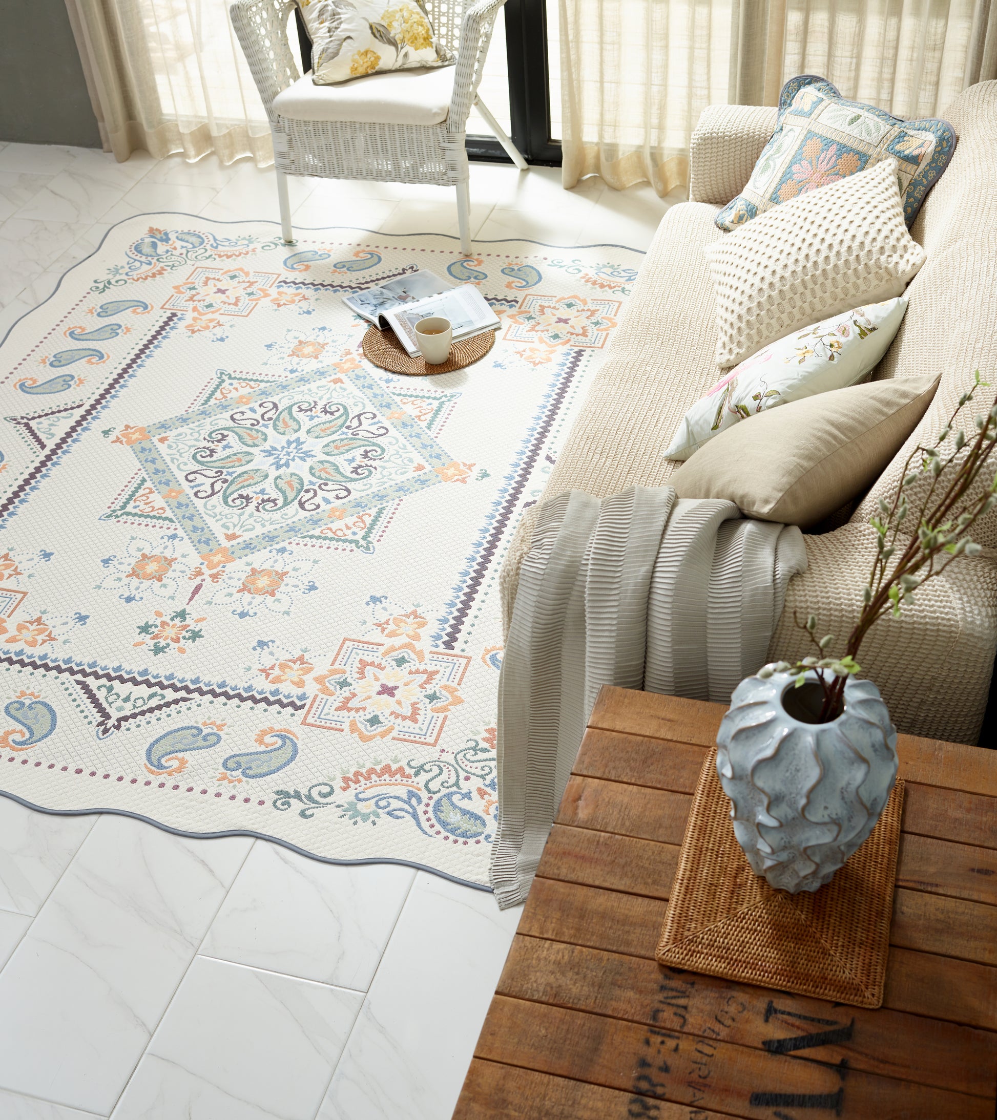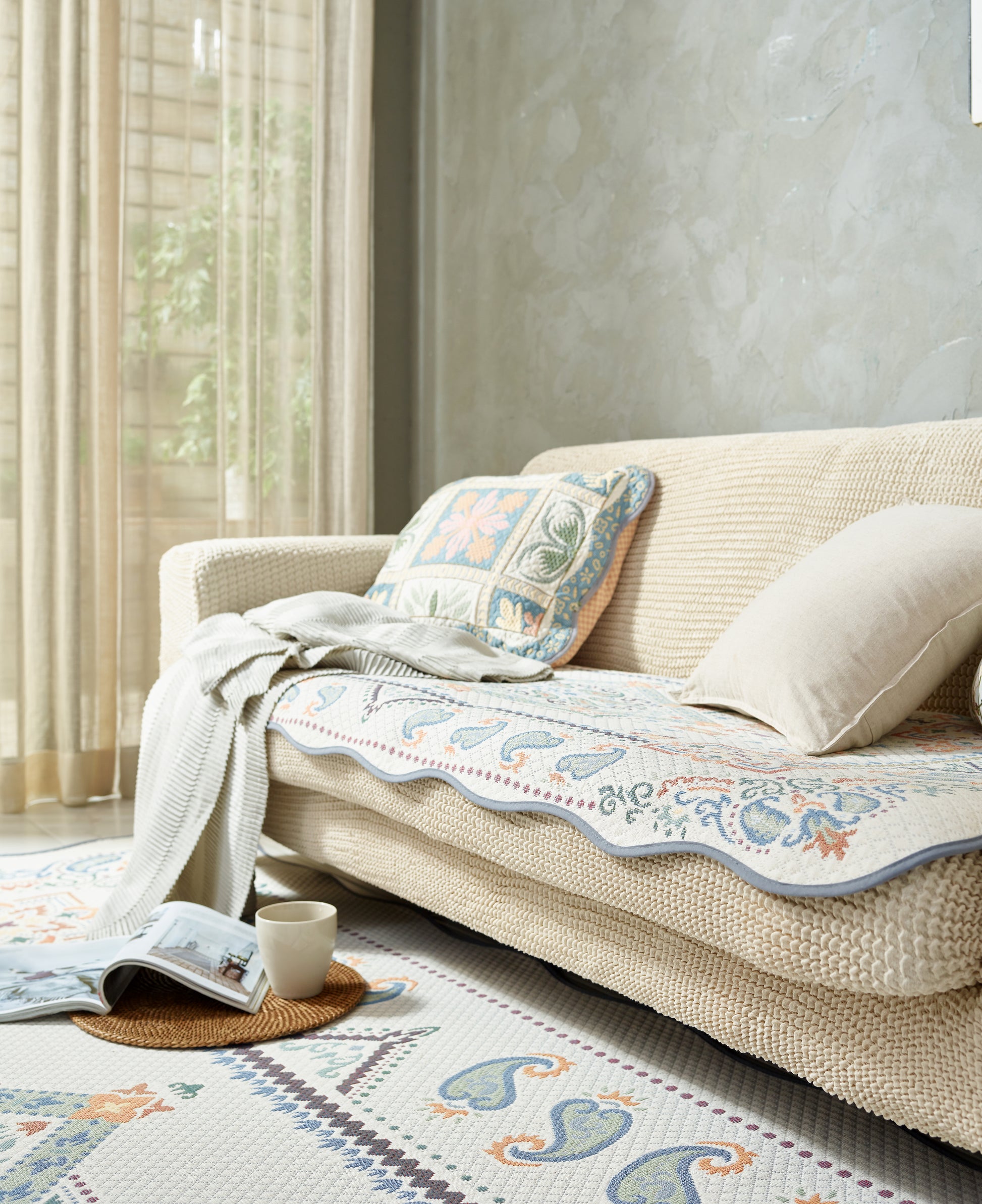 Jacquard woven crafted from yarn-dyed chenille yarn. Carefully selecting both traditional and modern designs, along with high-quality materials, this products are crafted to be practical and functional.