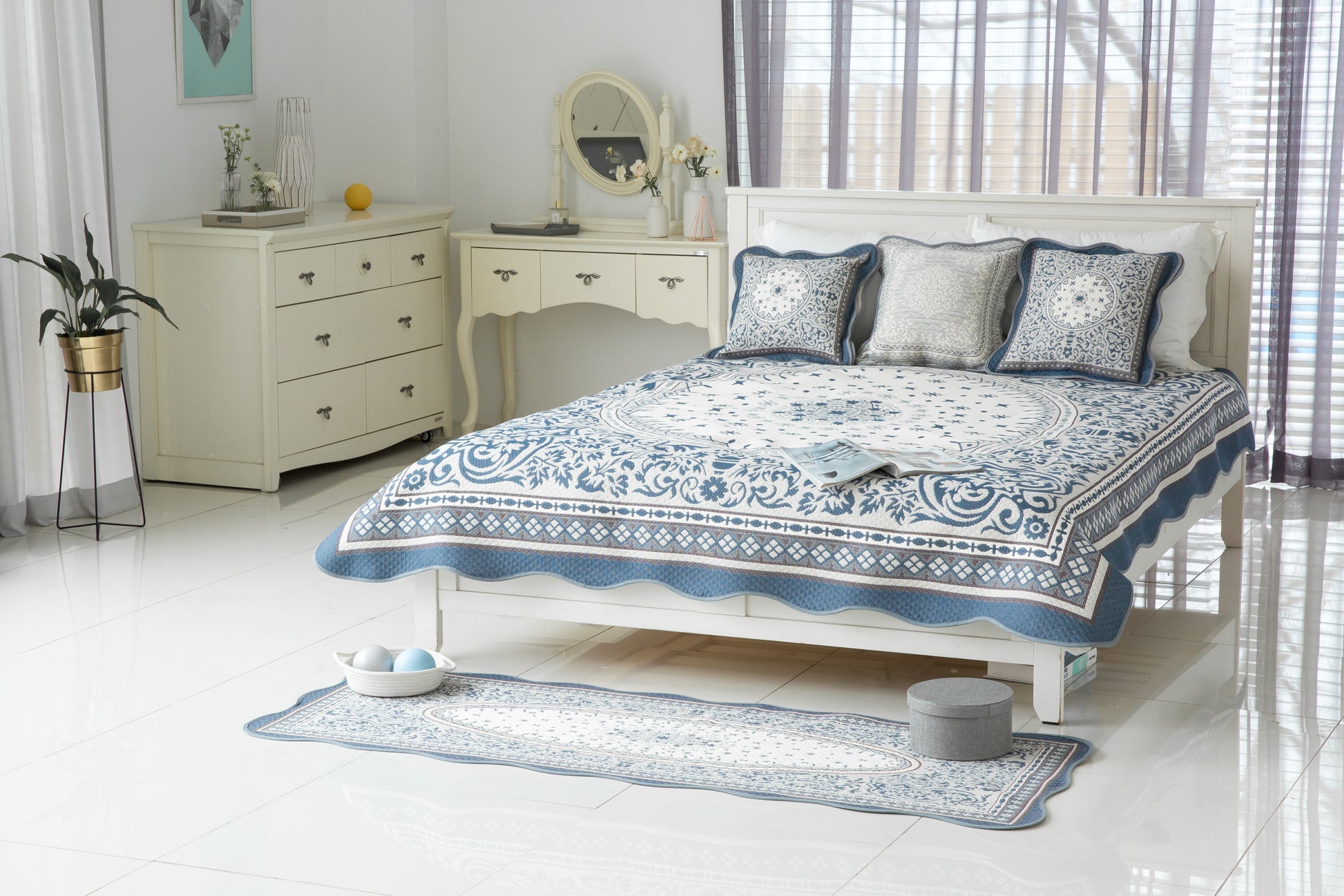 The elegant blue and white colors harmonize beautifully with the Blue Persian pattern, creating a sophisticated atmosphere